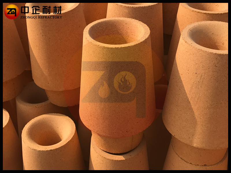 铸口砖也叫水口砖,水口砖镶嵌在盛钢桶底部座砖中的耐火材料,钢水流出口。不浇注时水口砖和塞头砖呈线接触,保证不漏钢。水口砖上 口是弧面形,便于开启、关闭水口及减小钢水