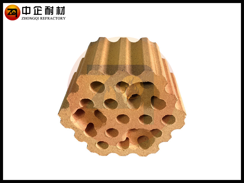 目前格子砖主要用在高炉热风炉和火焰炉上,格子砖主要用在热风炉的蓄热室里,由结构一定的带格孔的格子砖有序排列,格子砖上下通孔可任由气体通过。根据不同温度区域的技术要求,一般选用硅质格子砖、粘土砖等,在一些热风炉里,也有选择高铝砖、莫来石砖、硅线石砖等。热风炉的作用是把鼓风机送至高炉的冷风加热成热风,然后,热风通过热风管送至高炉内进行燃烧反应。高炉热风炉有烧炉期和送风期,两个工作期周期地轮换。在烧炉期中,燃烧后的高温烟气从热风炉格子砖的孔洞中通过,把热量传给格子砖;在送风期中,从鼓风机出来的冷风进入热风炉,被格子砖加热成热风后,通过热风管送至高炉内。
