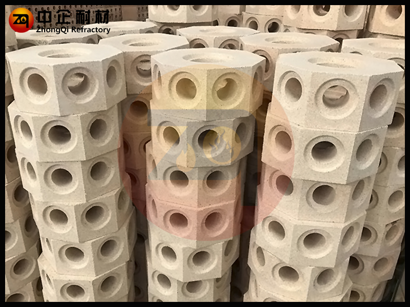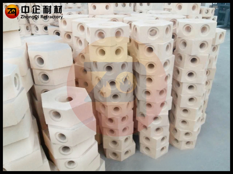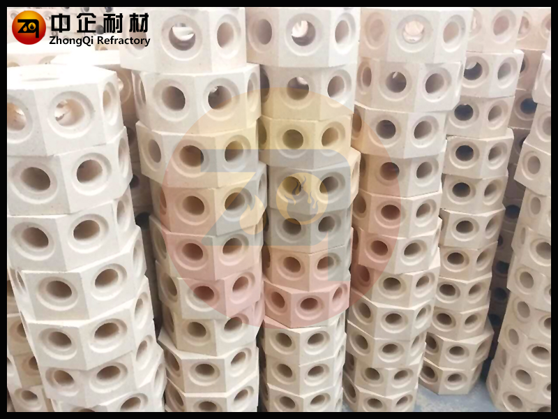 ■ 六孔分道六角中心砖是砌筑在铸锭用底板的沟槽内连通分钢砖和钢锭模的中空耐火砖,俗称汤道砖。流钢砖一般为有多种规格的长方体形中空黏土砖。为减小钢液流动过程中的阻力并防止漏钢,要求流钢砖内孔光滑,外形规整,接缝严密。